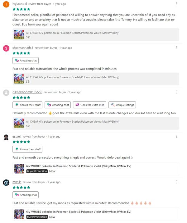 Awesome service! Just customise the pokemon you wanna and he provides detailed information/suggestions about the pokemon! (i.e shiny locked, pokemon home eligible) highly recommended if you wanna any customised pokemon!!